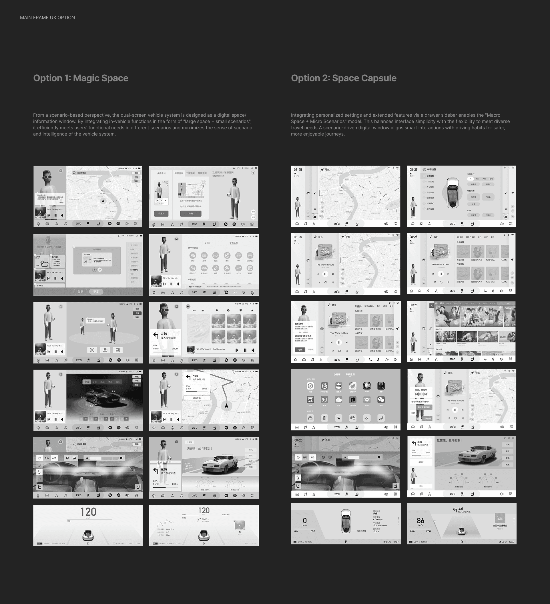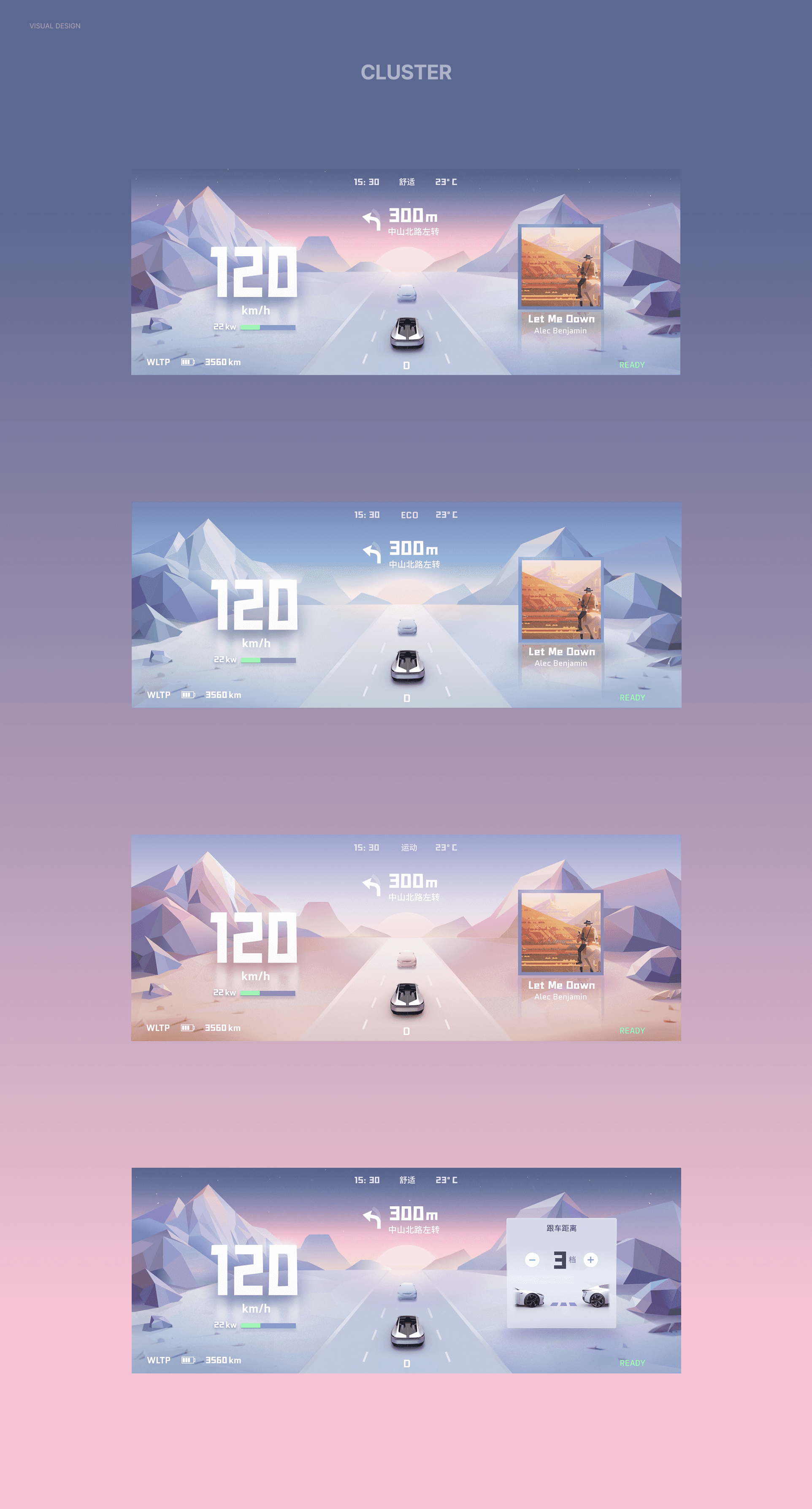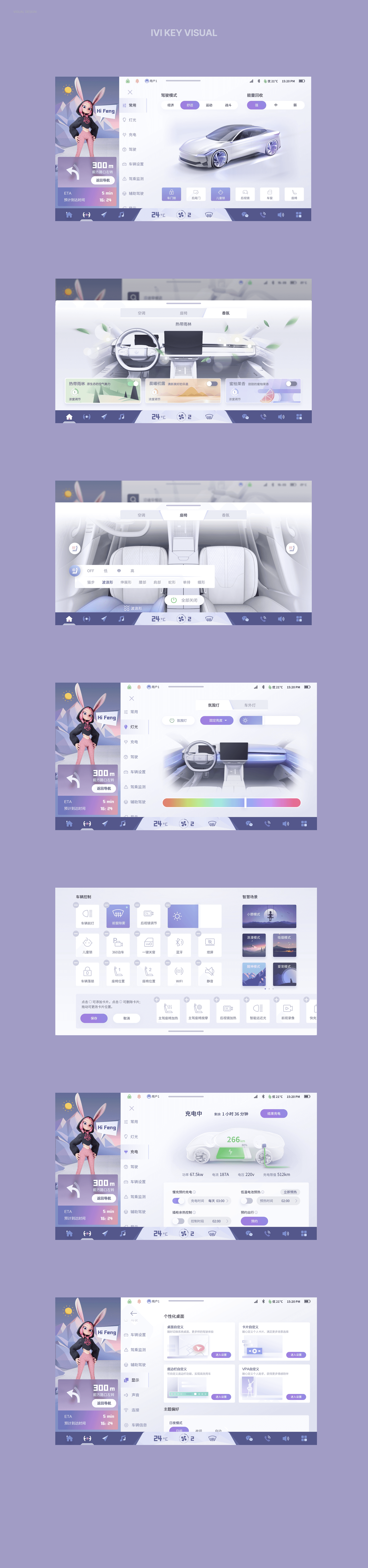 Partnering with Dongfeng group, we conceptualized and developed the IVI and Cluster interactive system and key visual for its latest product lineup, covering 16 functional modules including the core framework and smart scene cards. We organized expert evaluations and user testing, completed full-process usability validation of interactive prototypes, and delivered structured experience optimization reports. Key achievements: Delivered comprehensive brand design strategy and competitive analysis reports; completed the HMI interaction system design for more than 50 core pages across 16 major modules; Design the visuals of key functions, established complete interaction design documents and unified UX design guidelines to support large-scale development and implementation.
